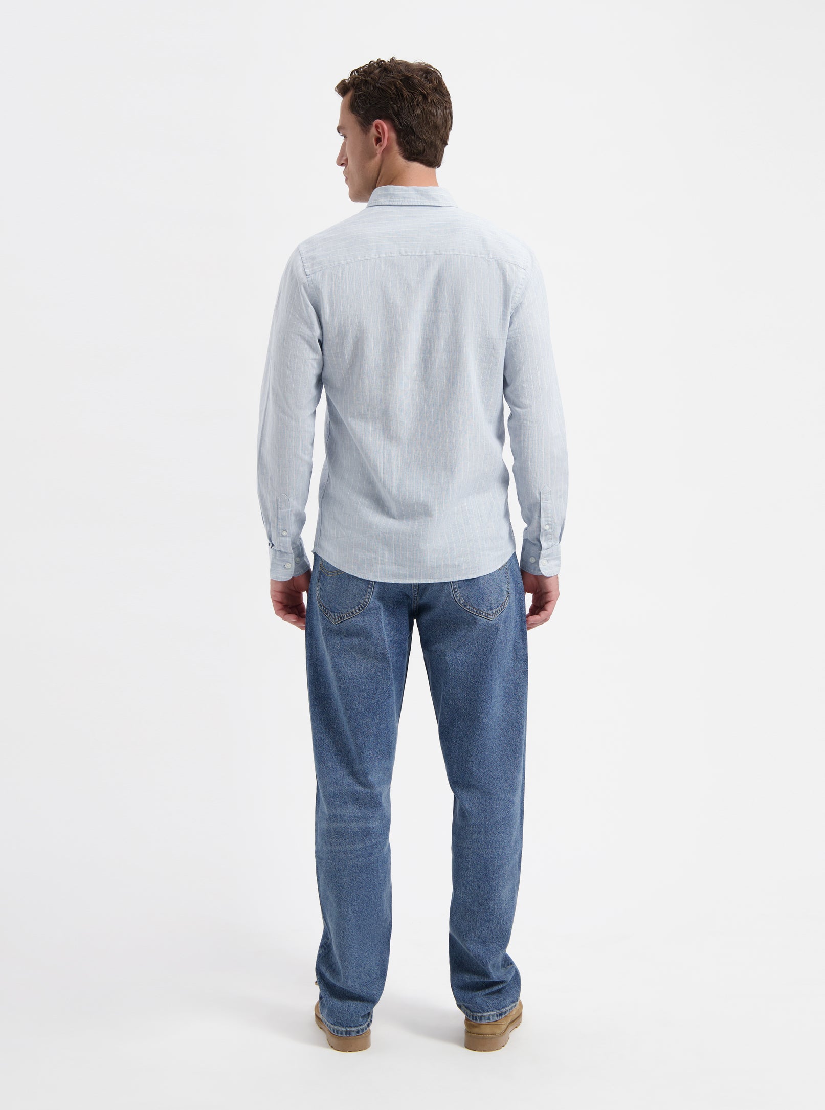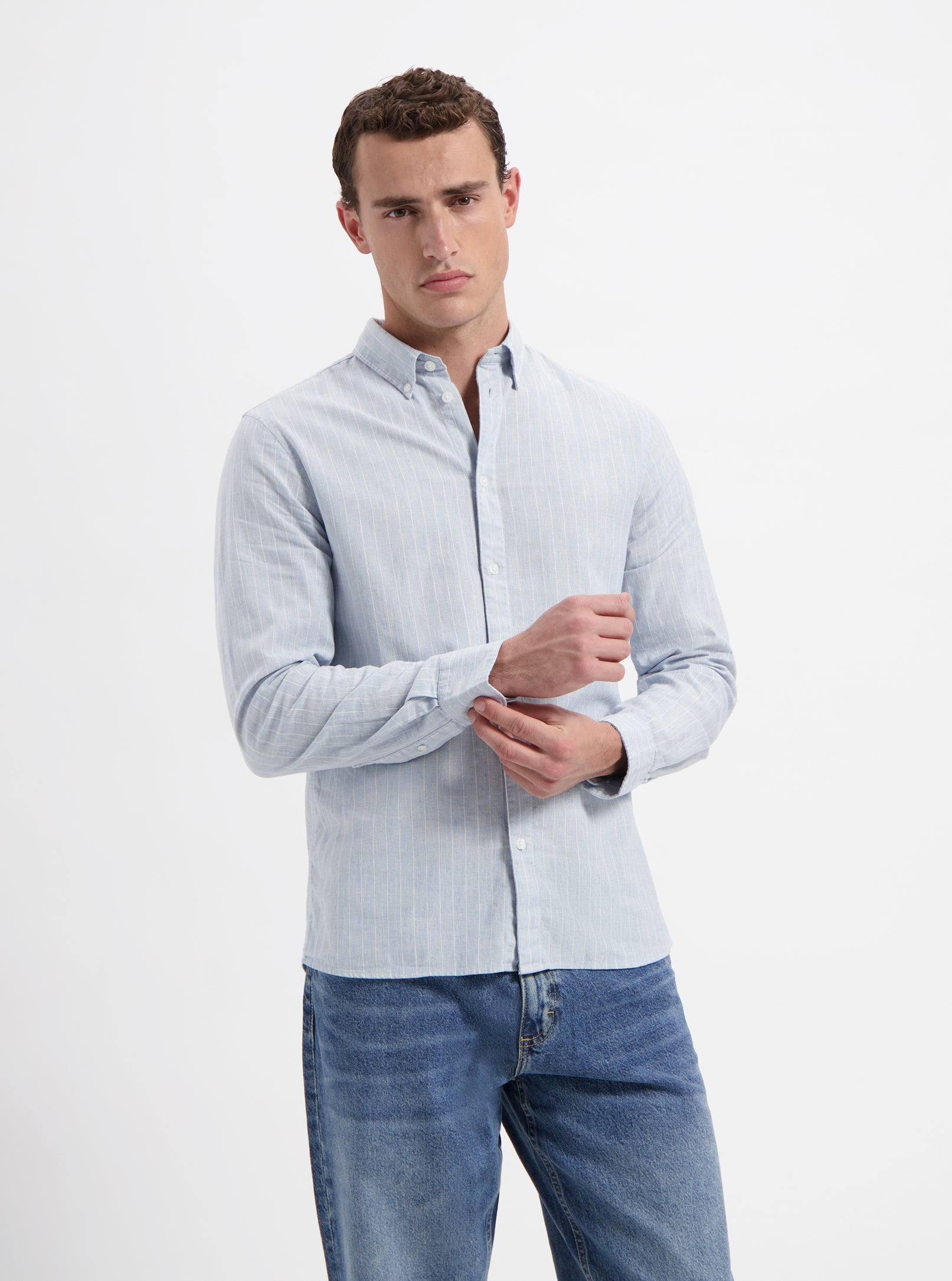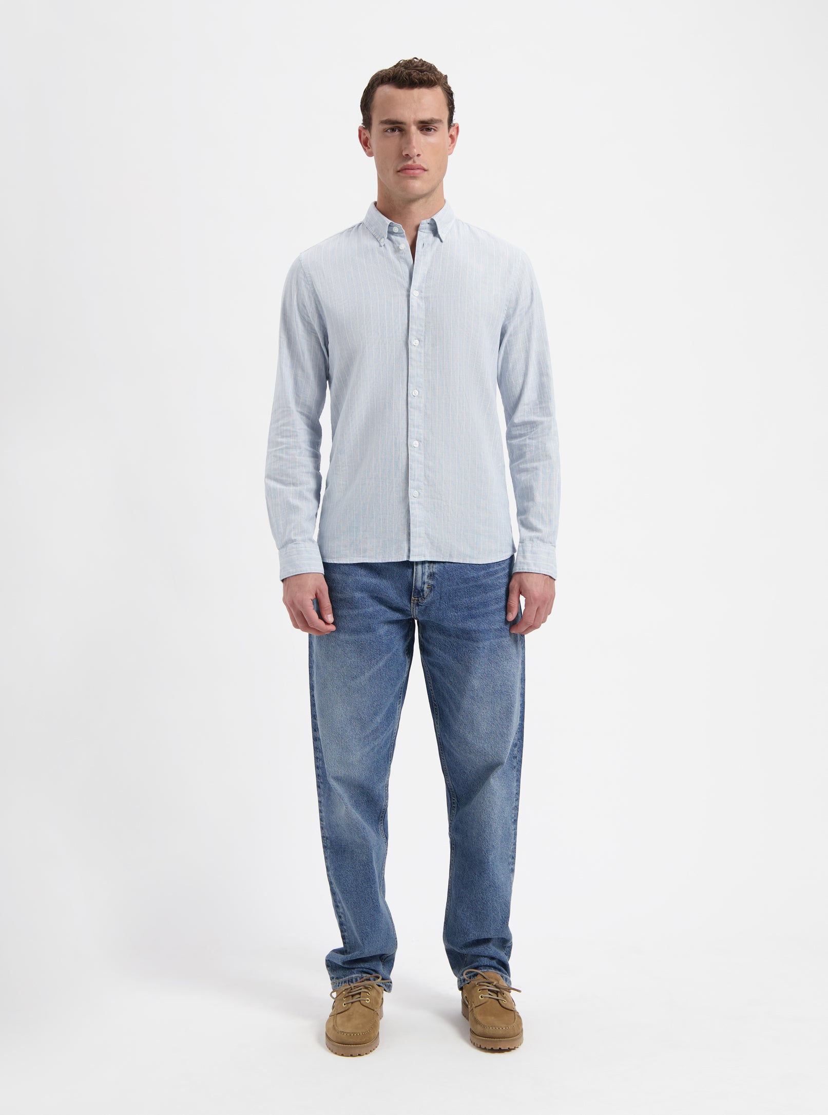 The James Shirt in light blue stripe offers a fresh, refined take on classic shirting. With its crisp striped pattern and tailored fit, it effortlessly combines style and versatility.