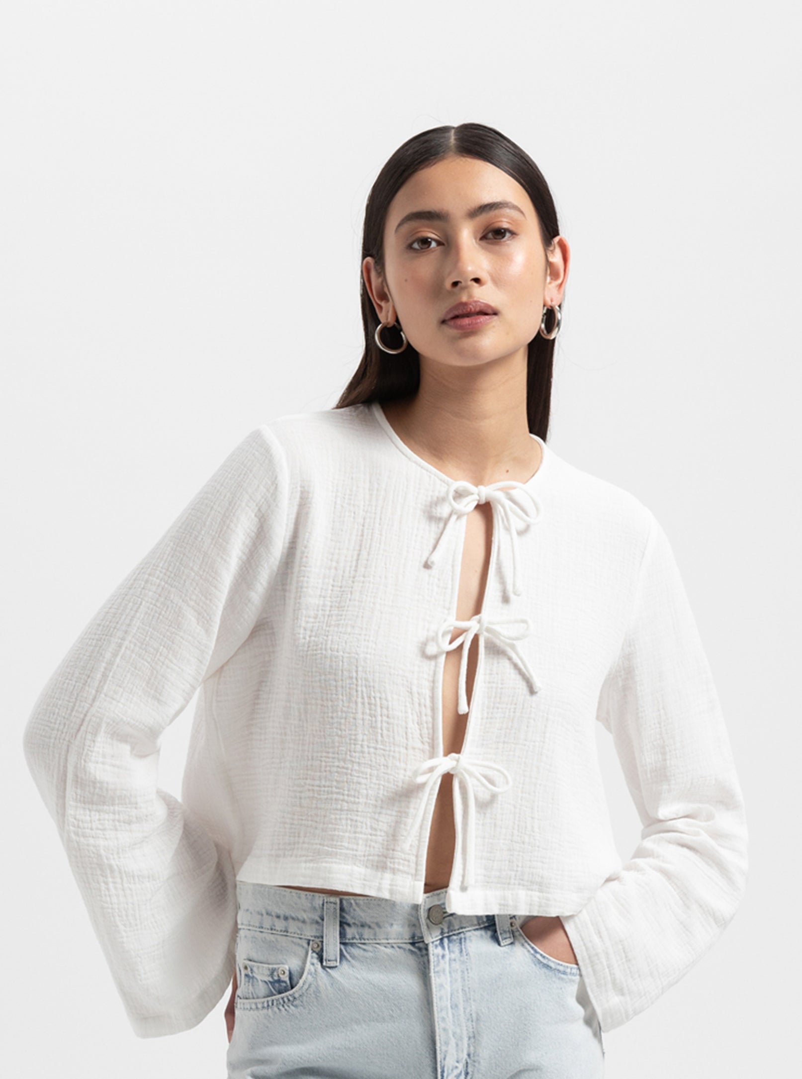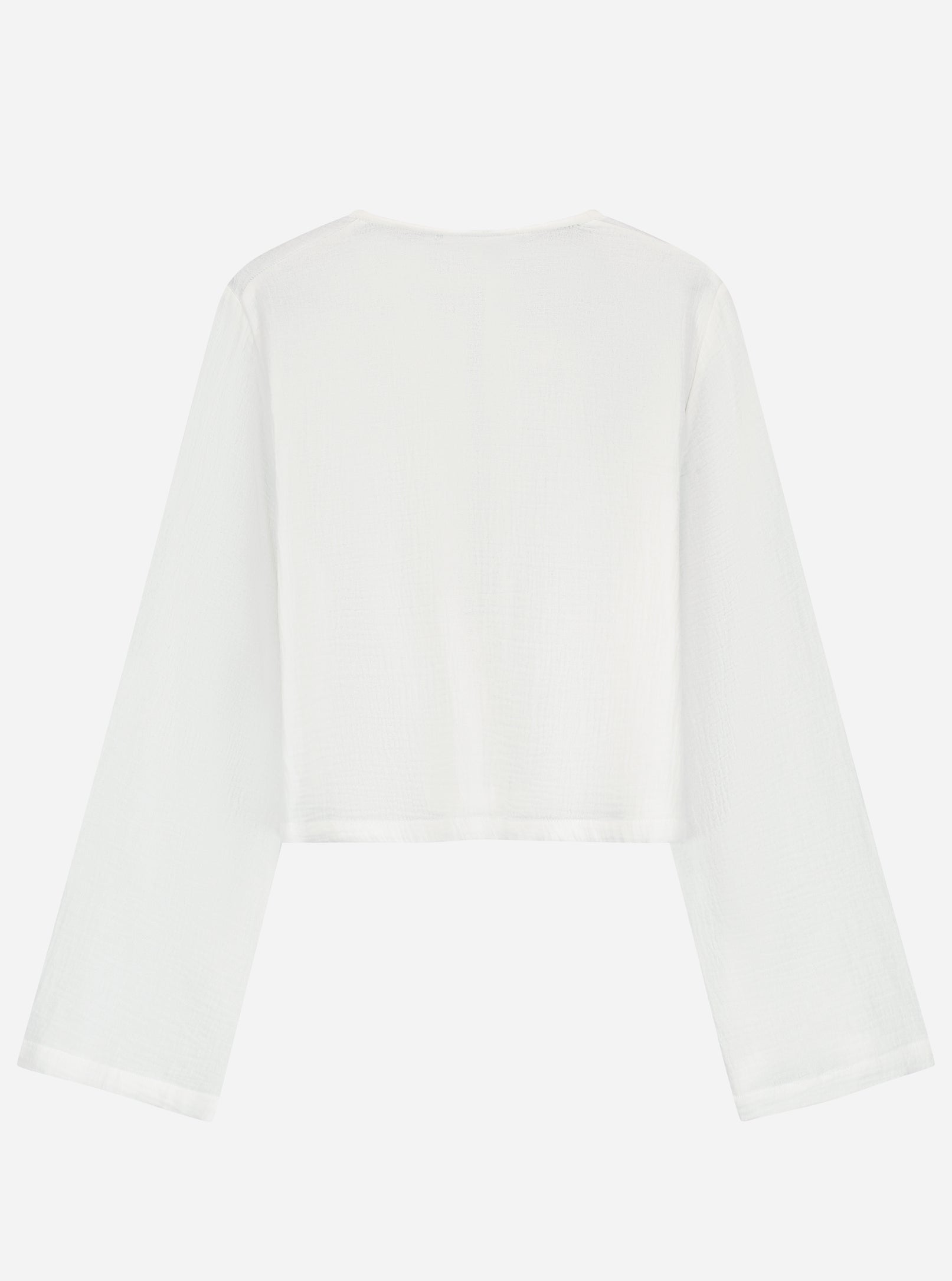 Georgie Muslin Blouse is made from a 100% lightweight muslin cotton fabric with a soft touch, lightness and breathability, ideal for the spring summer season. A cropped, slightly boxy fit with wider sleeves.