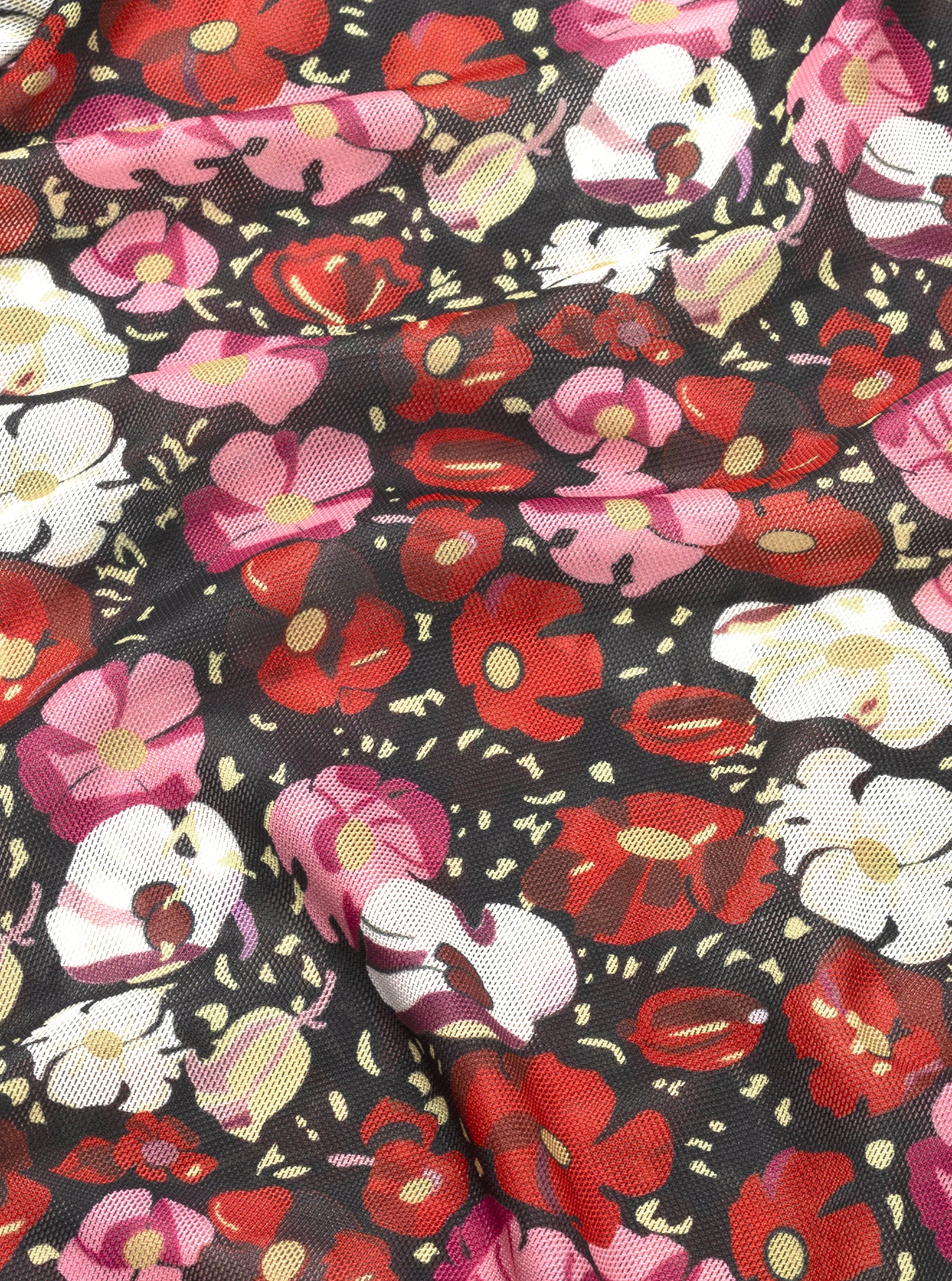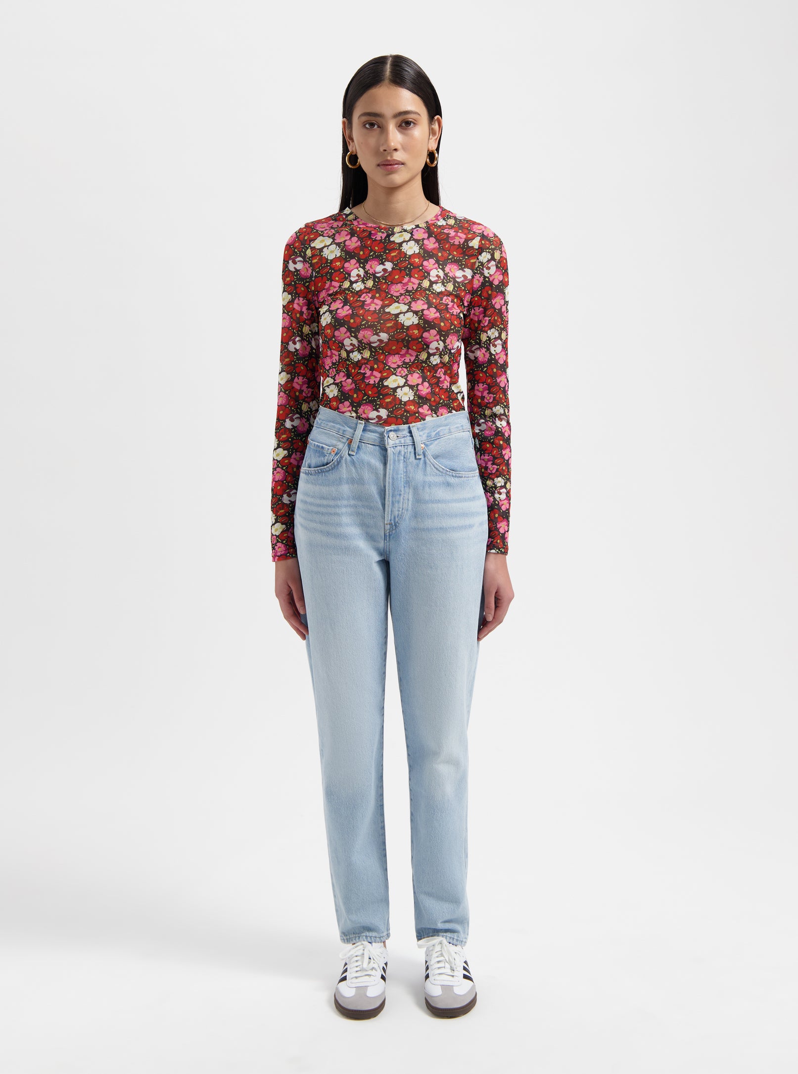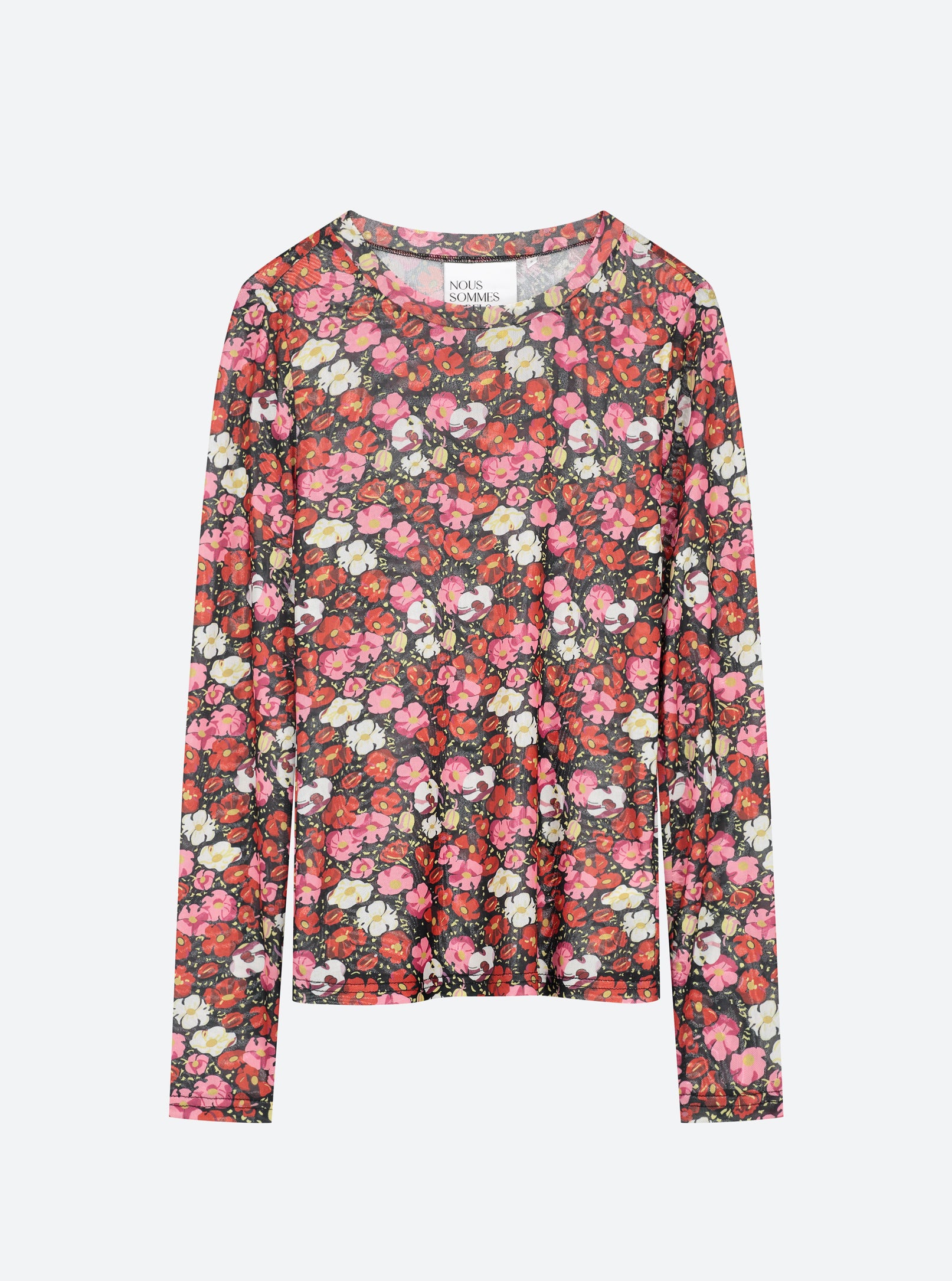 The Timmie Crew Top is a slim fitted top made from a semi-sheer mesh fabric with a playful floral pattern. Wear our Timmie Top on jeans or under a blazer.