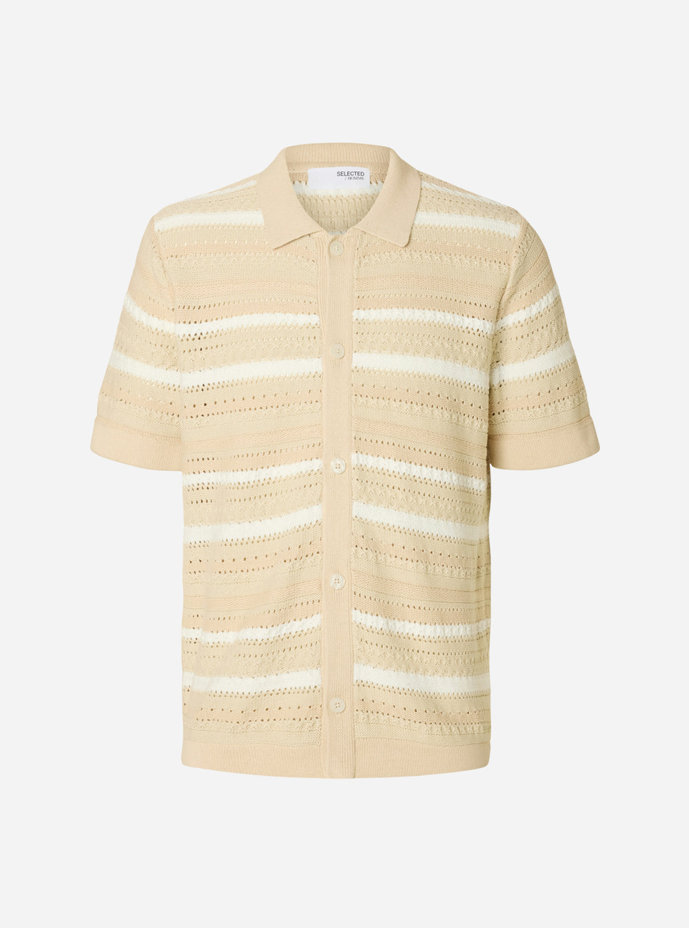 Palo SS Knit Crochet Polo Cardigan - Oatmeal