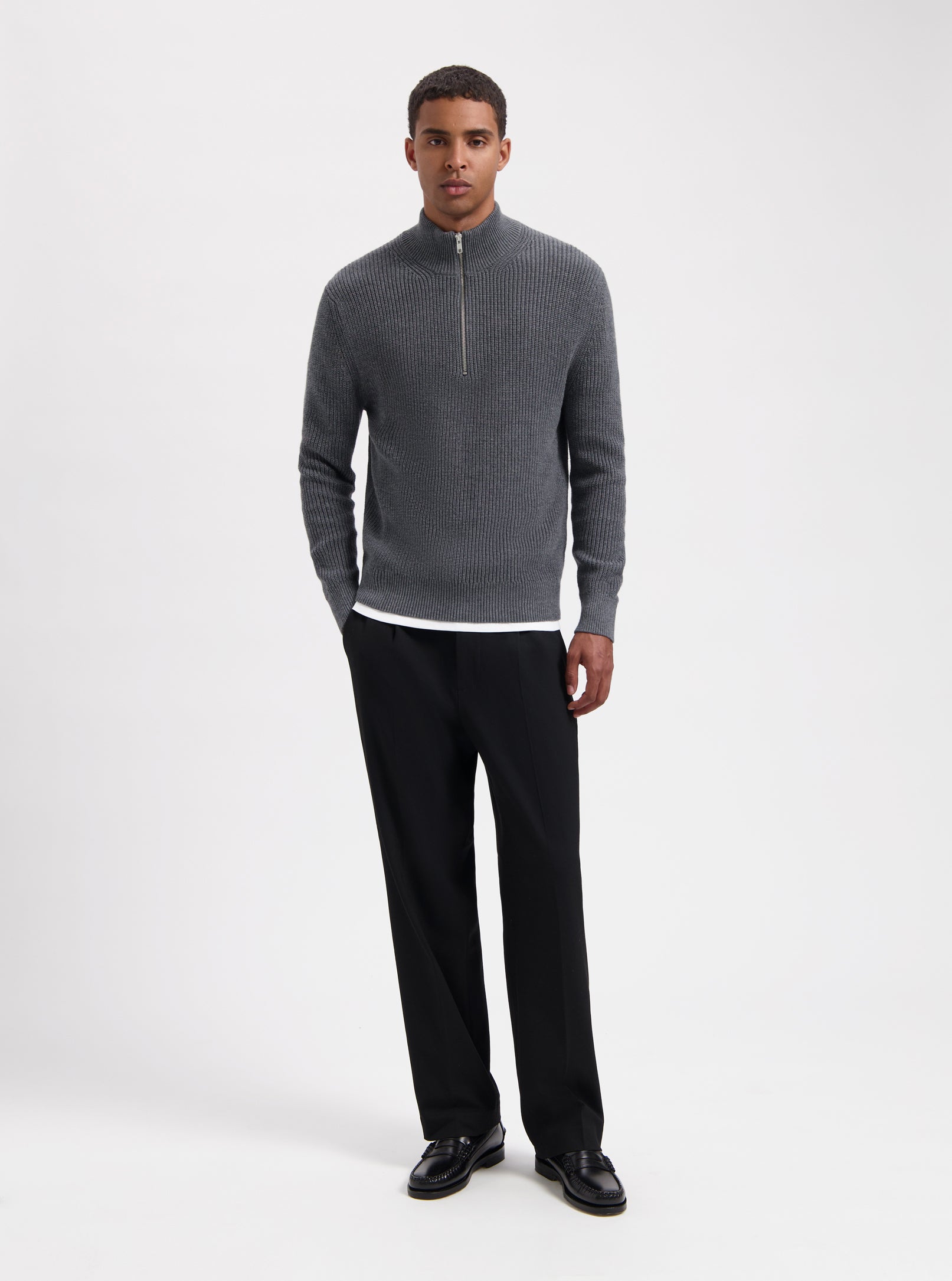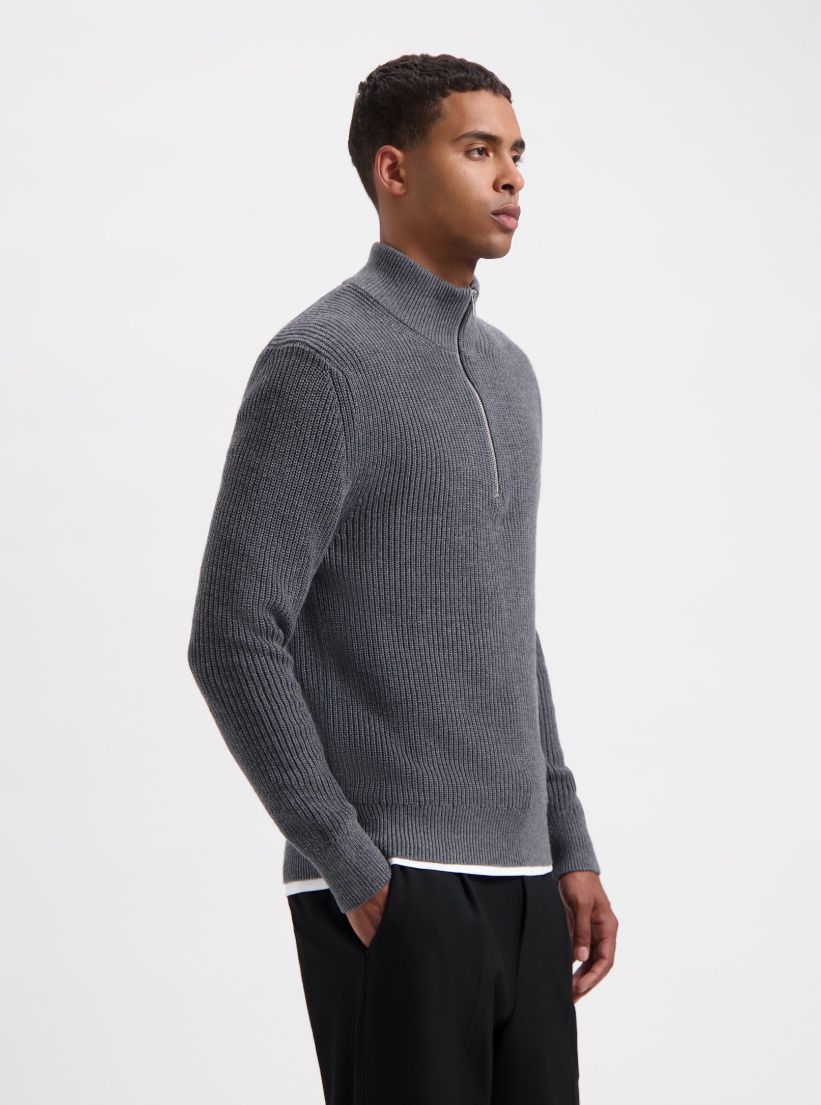 Floris Rib Halfzip - Dark Grey Melange