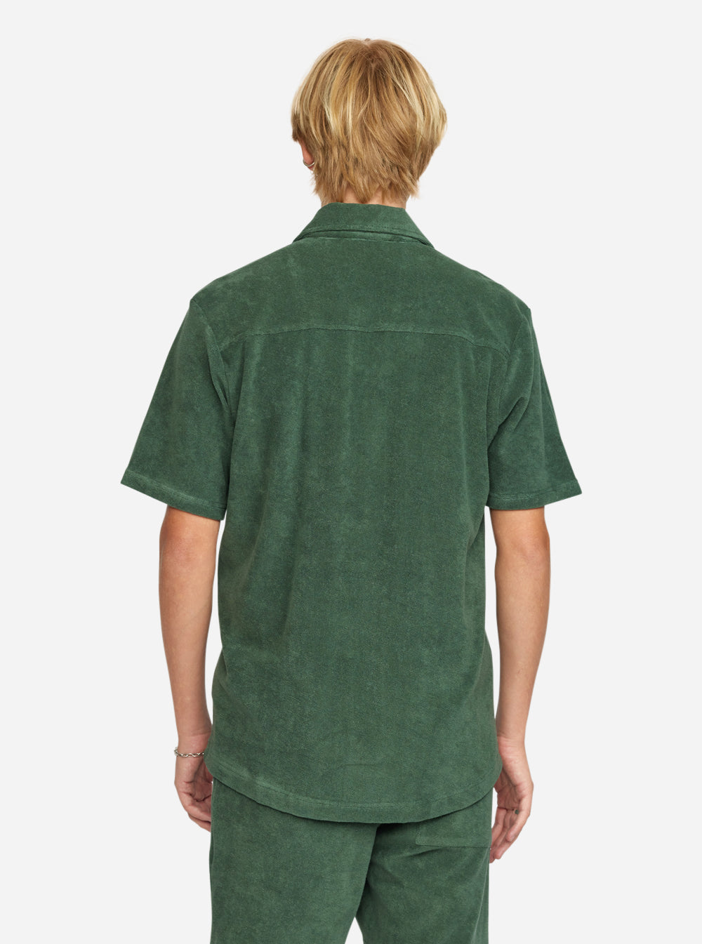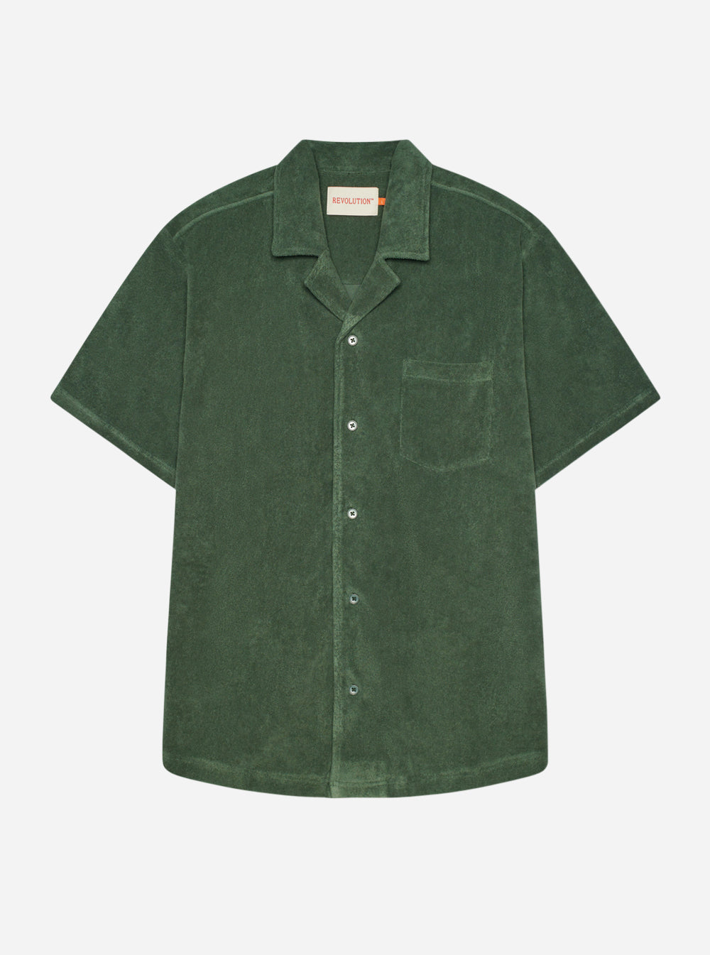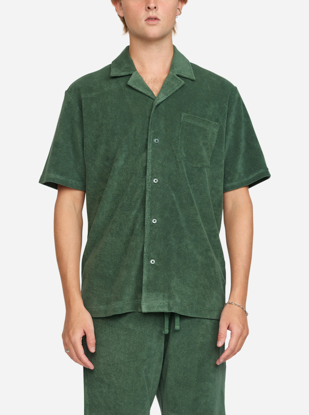 Short sleeved shirt with a cuban collar in a soft organic cotton terry jersey stretch fabric. Style it in set with Terry Shorts.