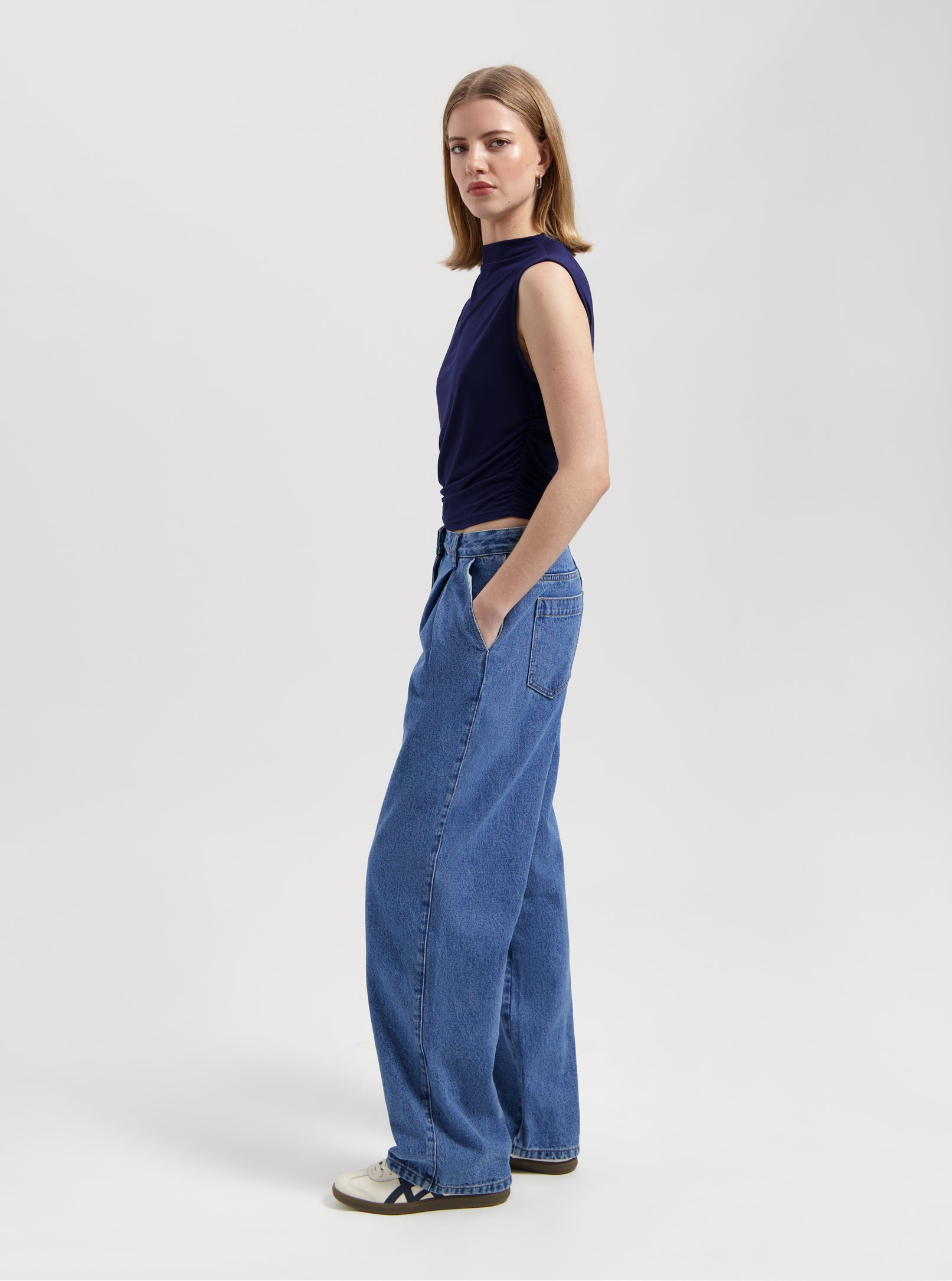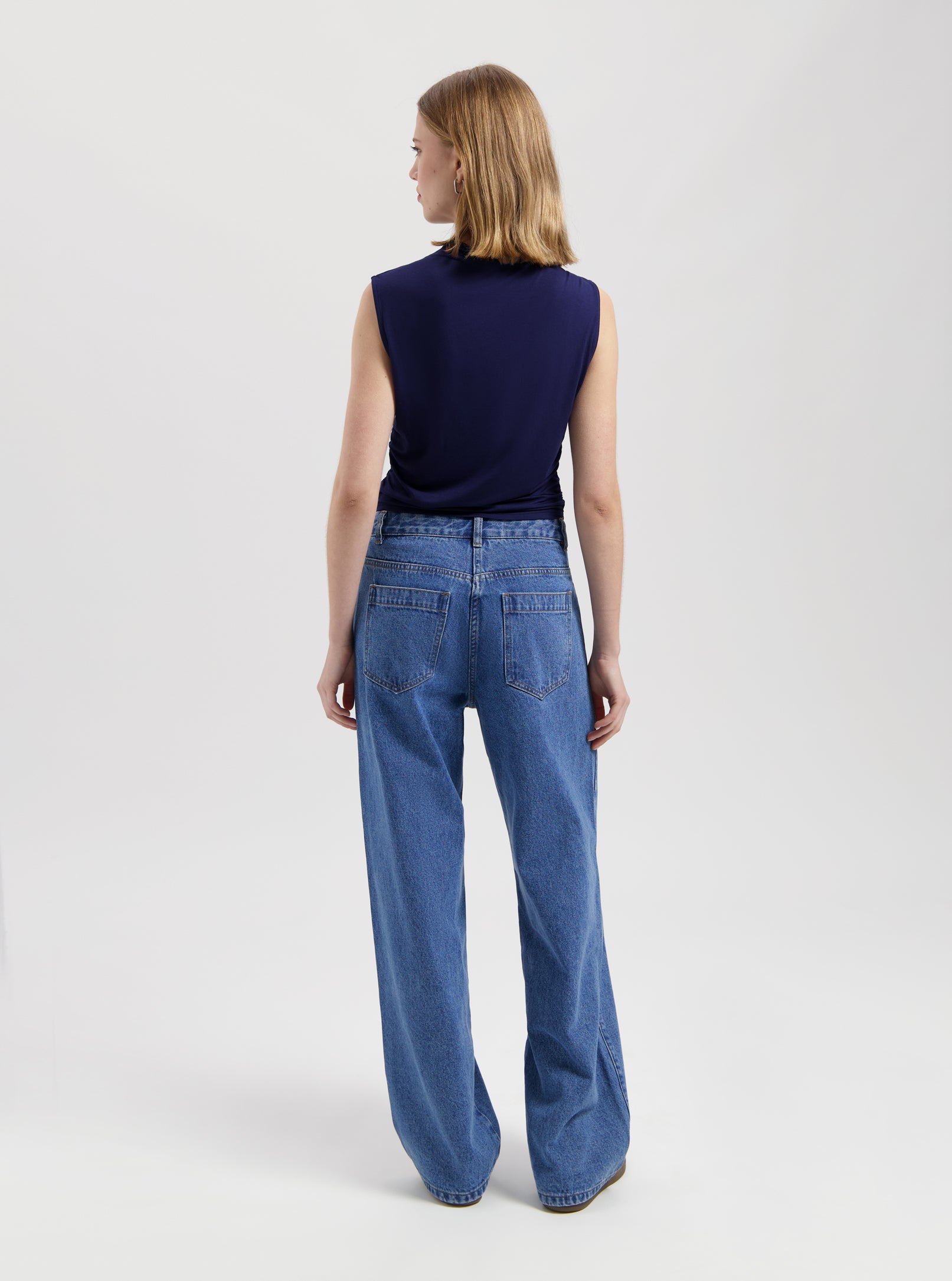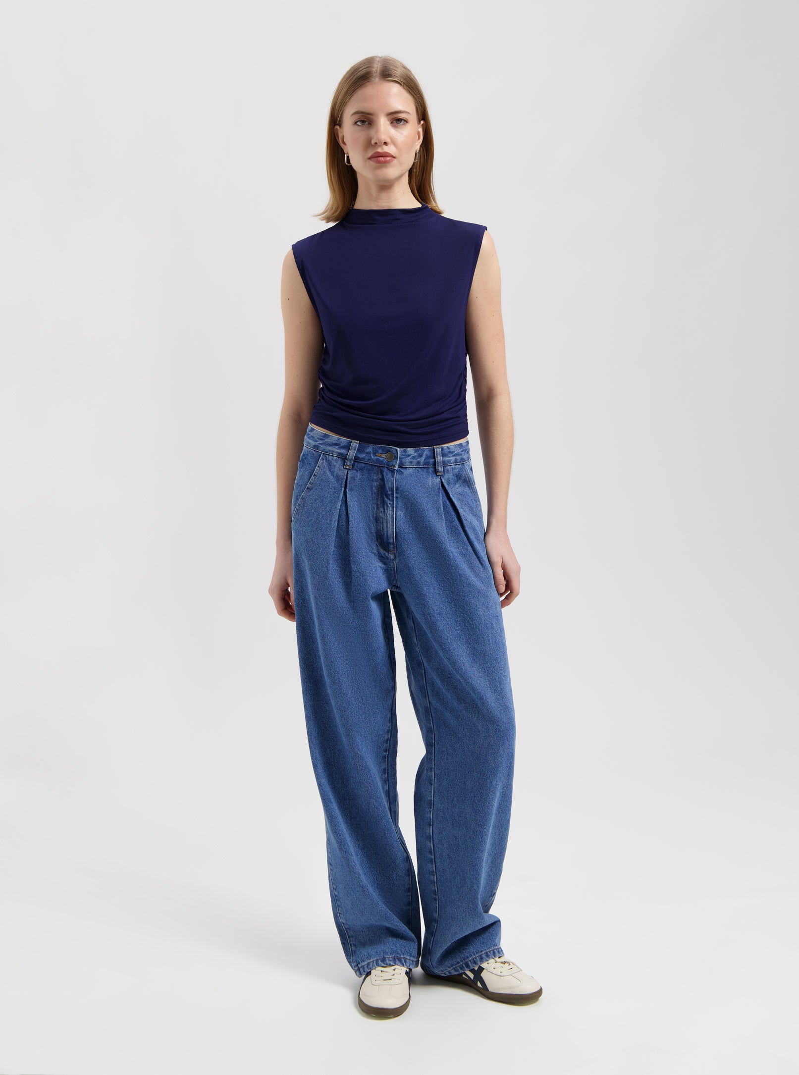 Sleek, sophisticated, and effortlessly versatile, the Jamie Top in Navy Blue is a modern essential. Designed with a flattering mock neckline, this sleeveless top exudes elegance while maintaining a minimal, refined look. The fitted silhouette hugs the body beautifully, enhanced by delicate ruching on the sides for a touch of texture and a figure-flattering effect.