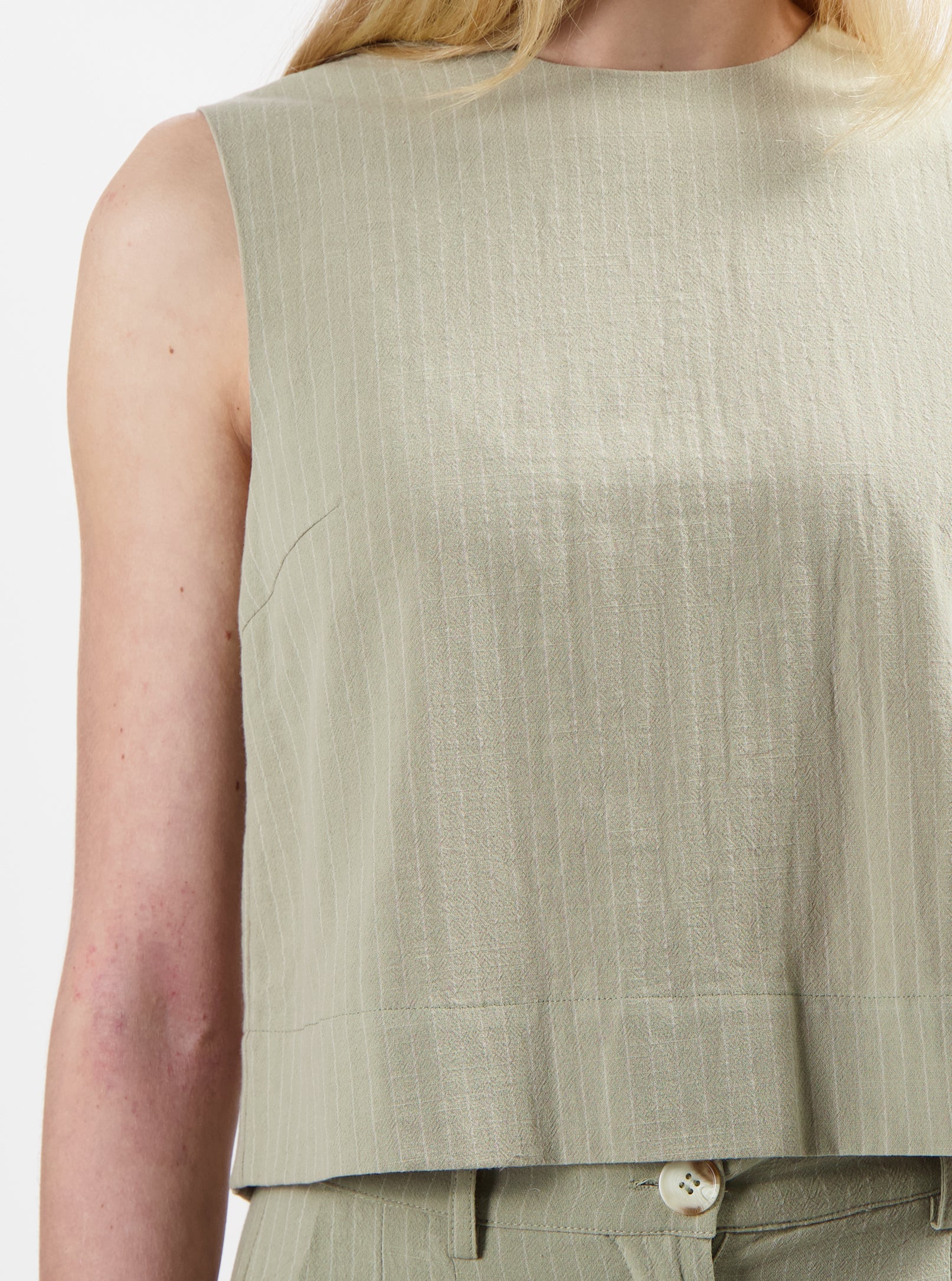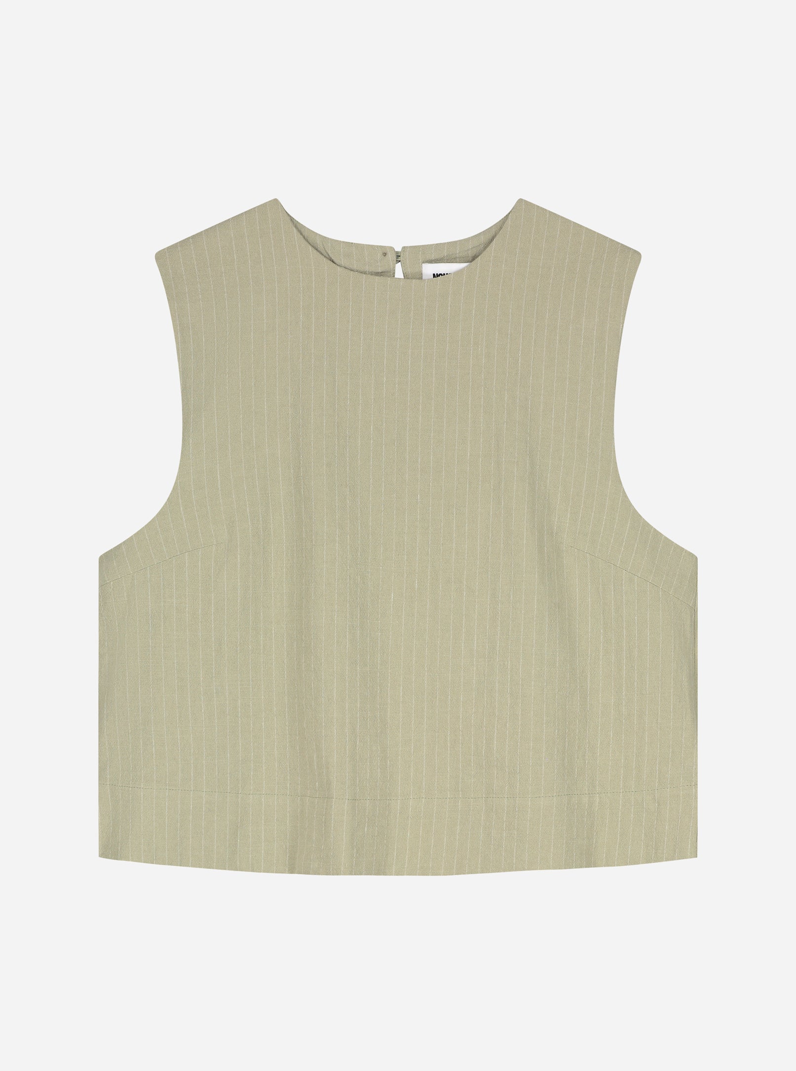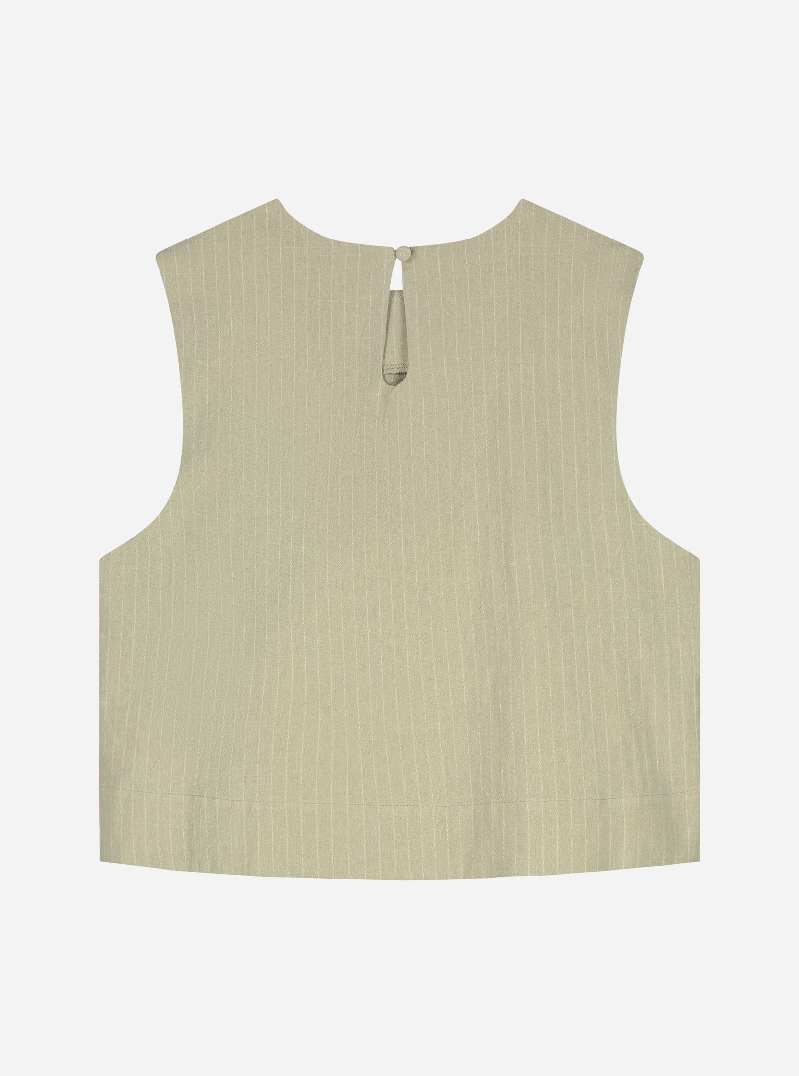 The Mira Top Light Green is a bold yet feminine piece that effortlessly combines structure with comfort. This sleeveless top features a tailored, structured silhouette that highlights the natural shape of the body while offering femininity and versatility.