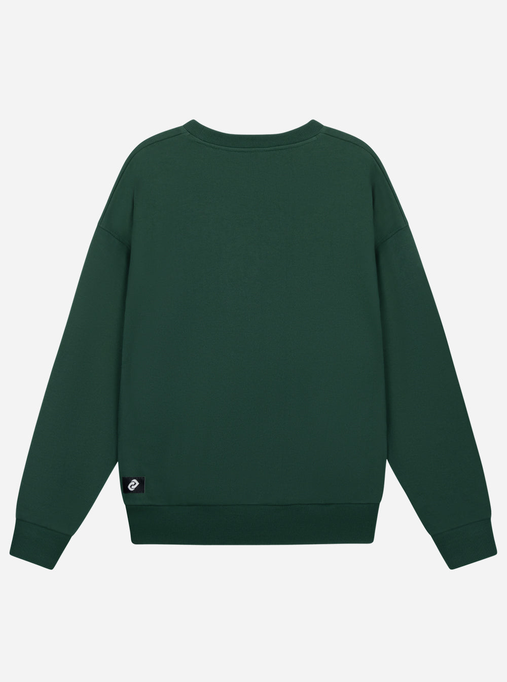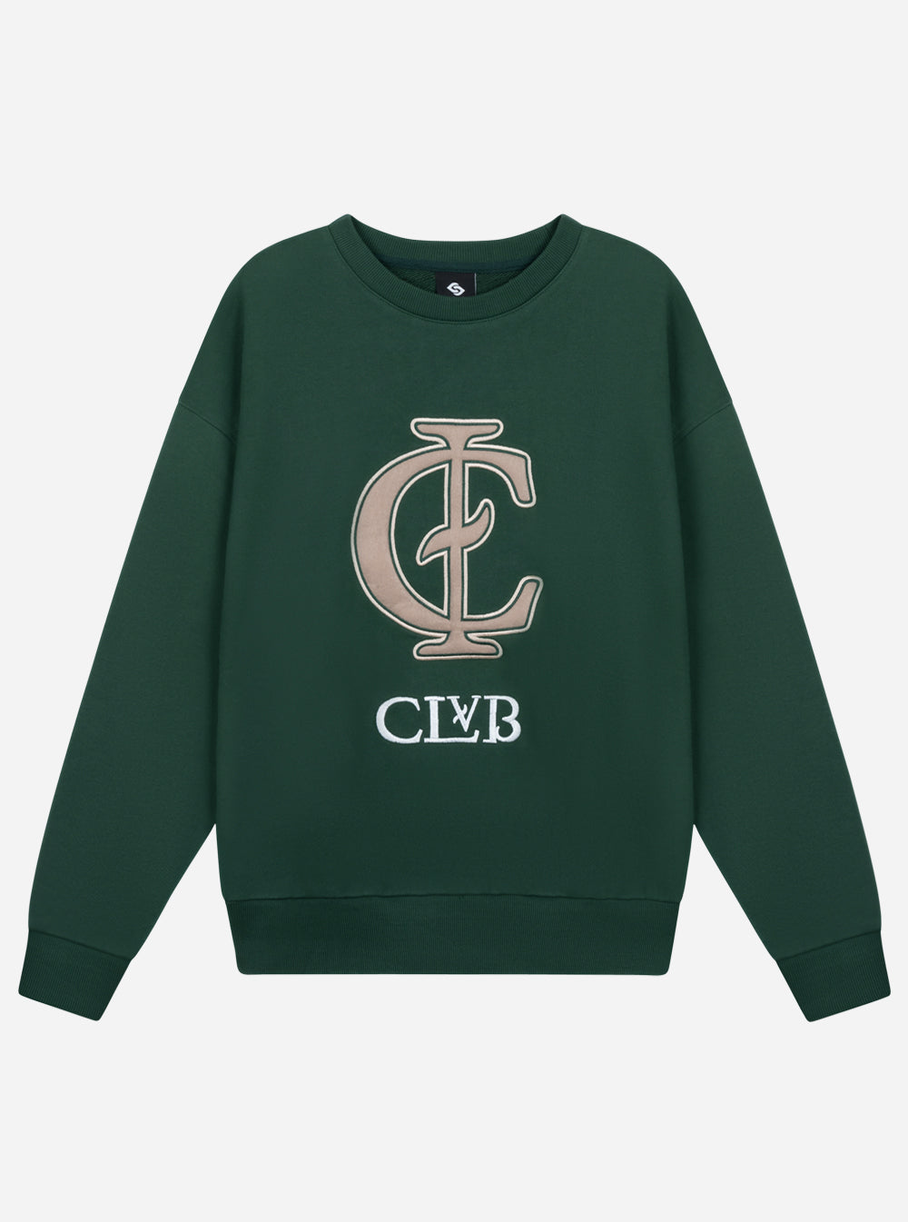 Rainforest green crewneck made from 100% cotton with a slightly oversized fit. Features a bold Comfort Club graphic in a varsity-inspired finish at the chest.