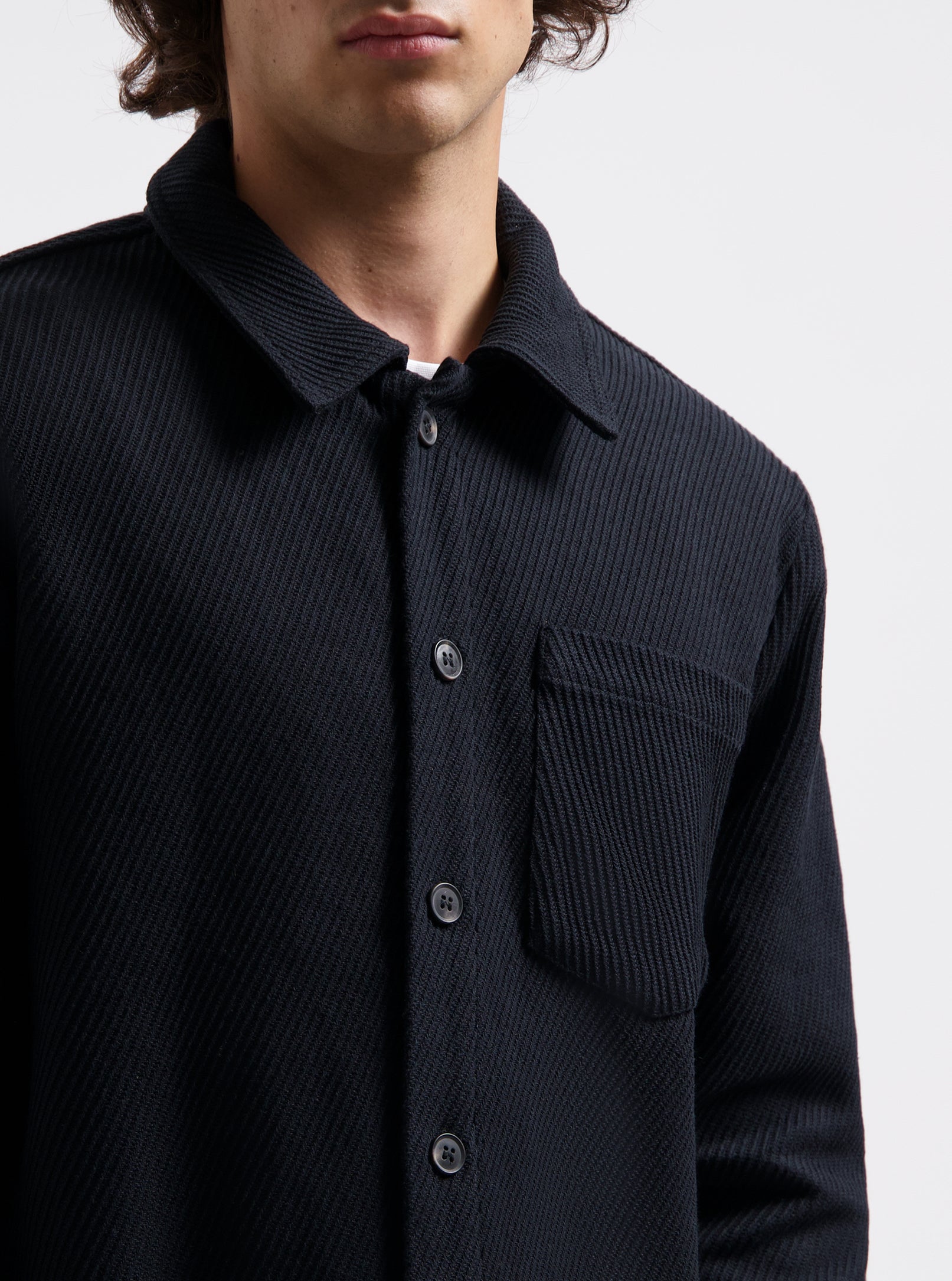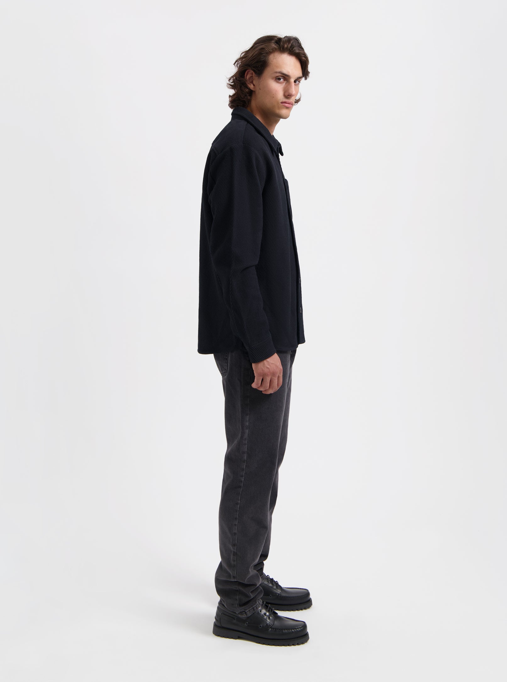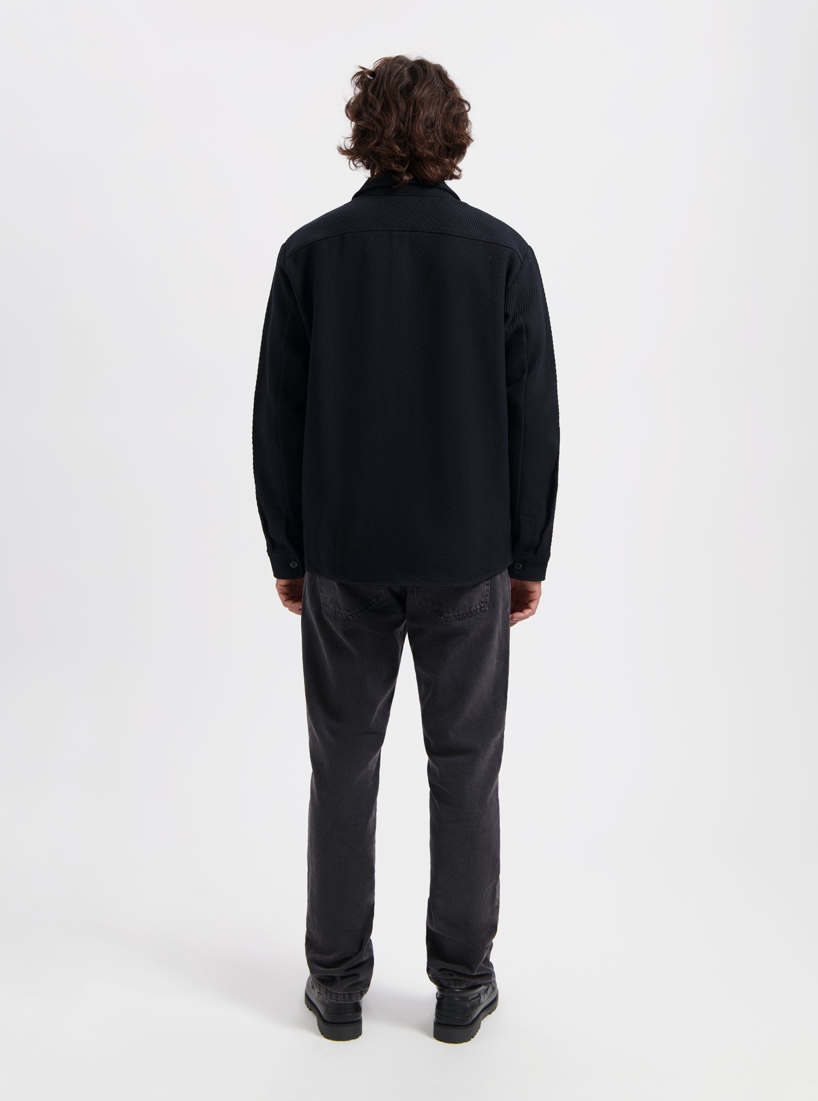 Black overshirt made from 100% cotton, offering a structured yet comfortable fit. Designed with classic shirt details and versatile enough to wear as a light jacket or mid-layer.