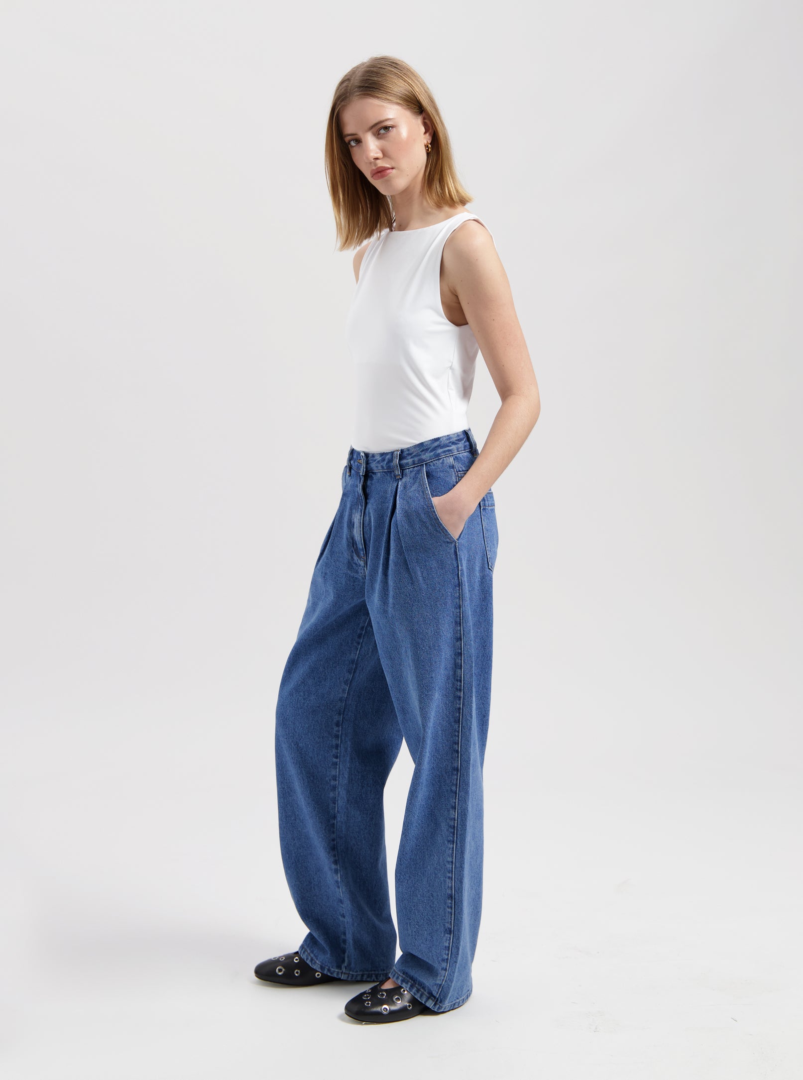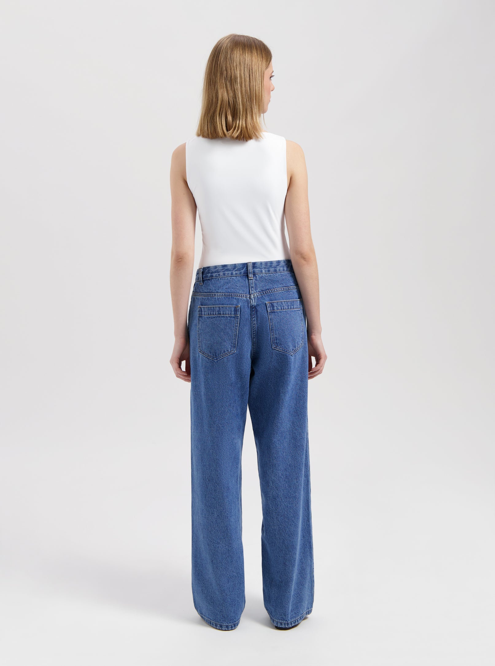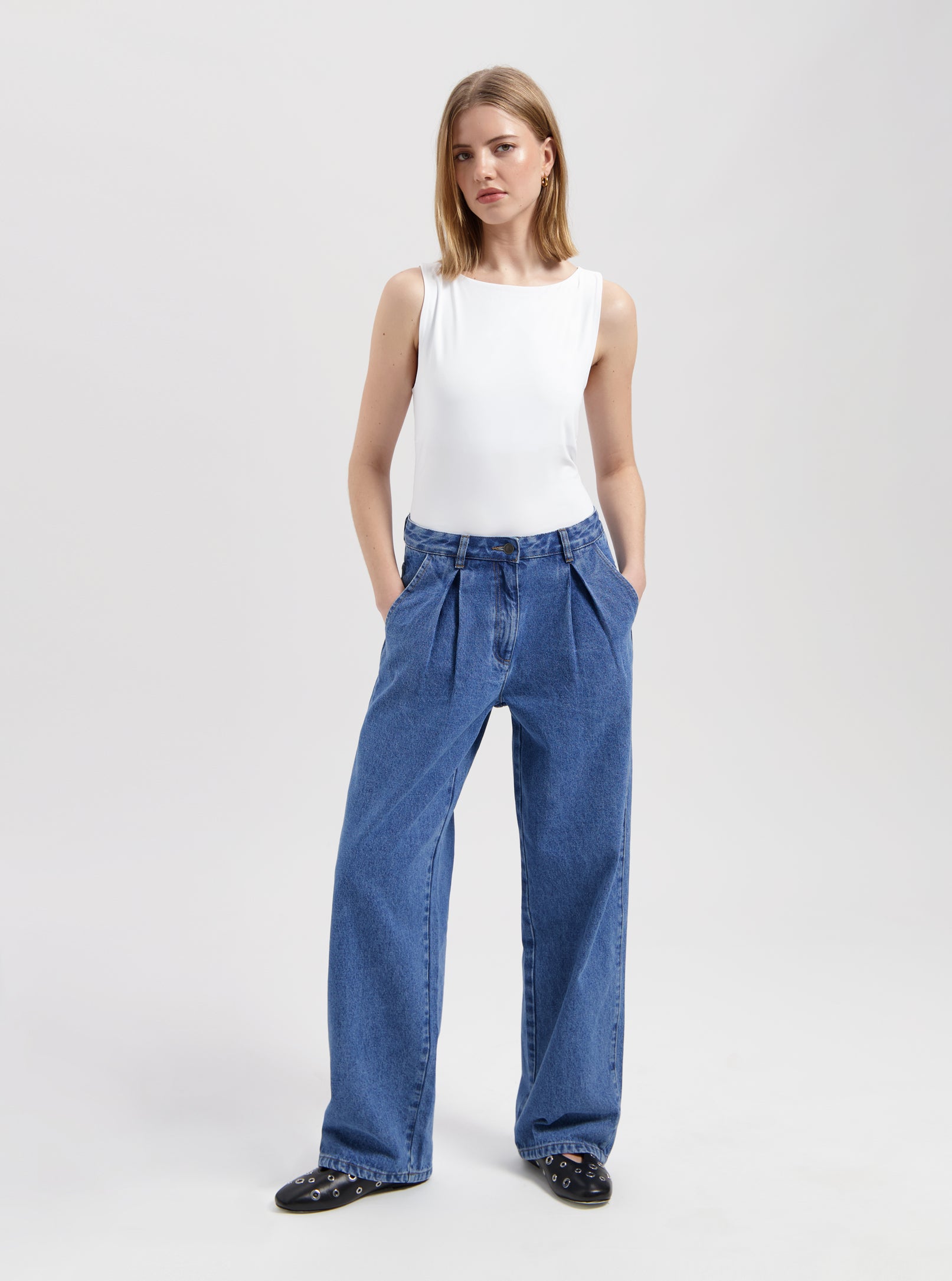 The Lina Denim Trousers are the perfect complement to the Fiona Jacket, creating a seamless and stylish look. Crafted from premium denim, these trousers feature a flattering, relaxed fit that contours the body while providing all-day comfort. Whether dressed up with heels or styled casually with sneakers, these trousers are a versatile staple that effortlessly elevate any outfit.