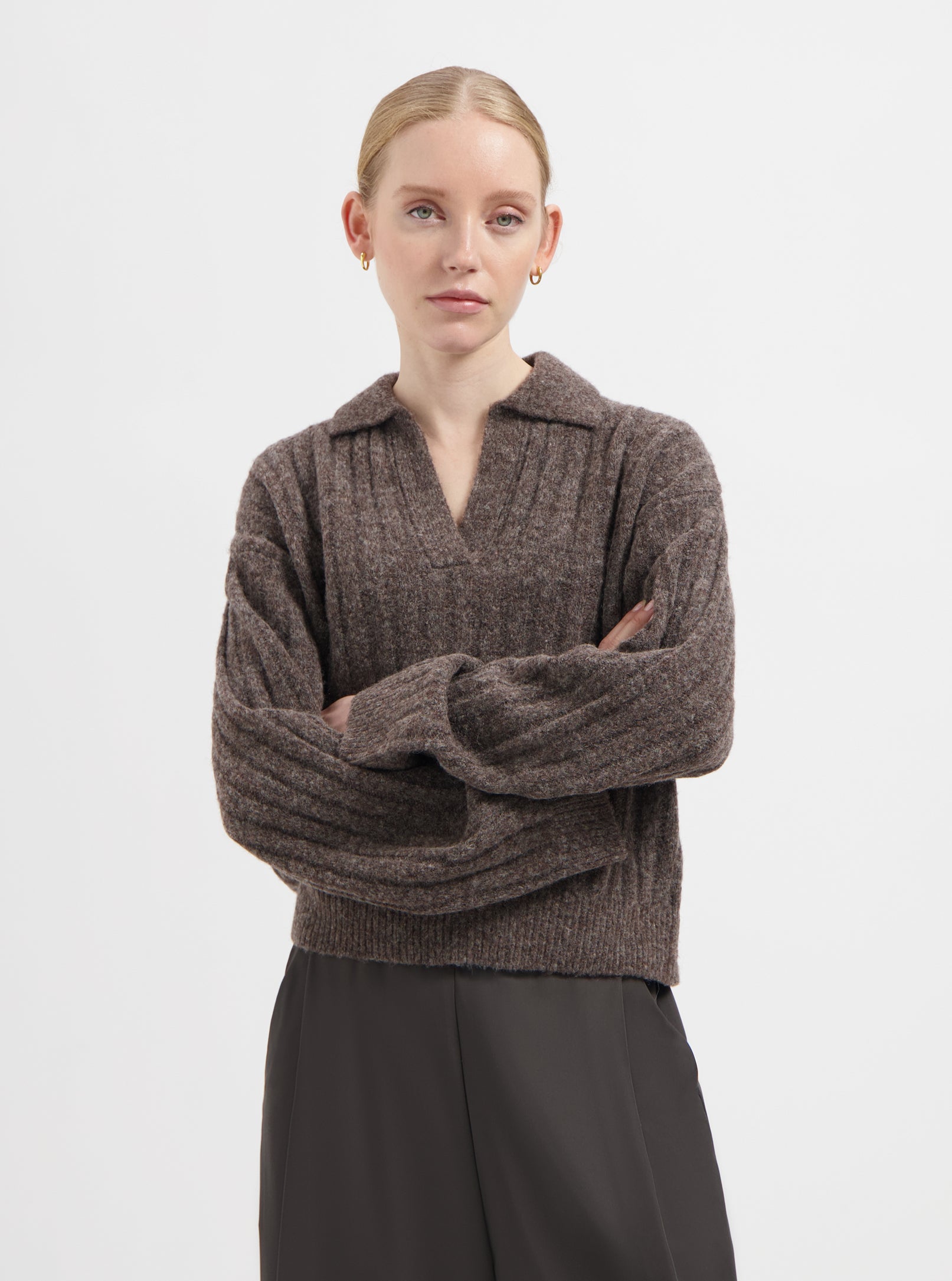 Mila Wool Polo Pullover - Brown