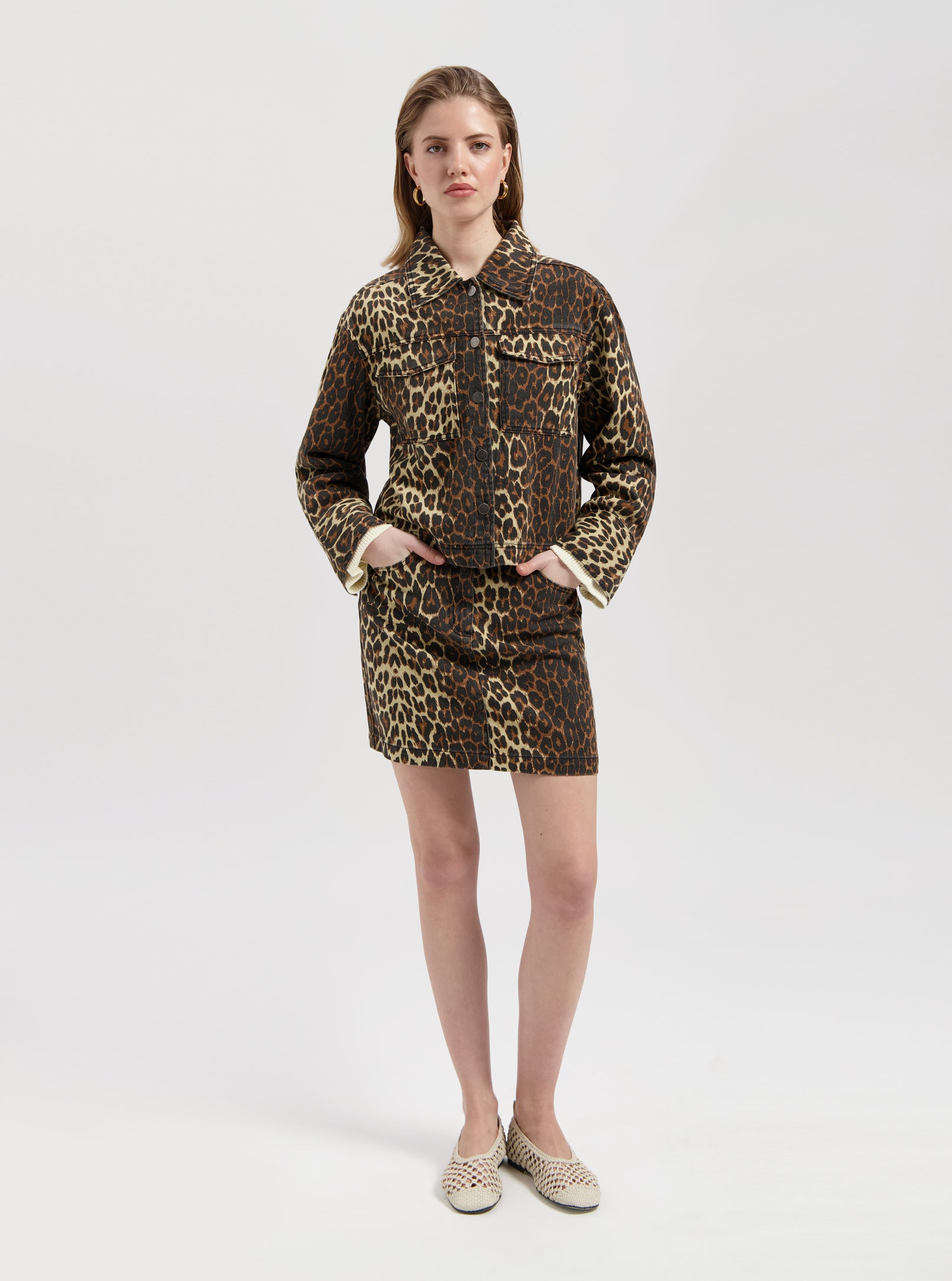 Complete your statement look with the Tina Mini Skirt, the perfect match to the Maya Jacket. Featuring the same bold leopard print, this mini skirt offers a sleek, structured fit that accentuates your silhouette. The tailored design adds a polished touch, while the mini length keeps it playful and versatile. Wear it as a set with the Maya Jacket for a striking co-ord moment or style it with a classic top for a balanced, effortlessly chic outfit. A must-have for those who love to make a statement.